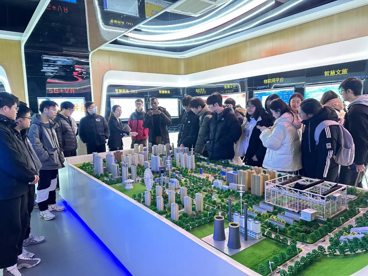 在联通公司,员工主要听取讲解人员对中国通信行业发展历程、5G+工业、AR、物联网、智慧城市建设等各方面的具体应用。