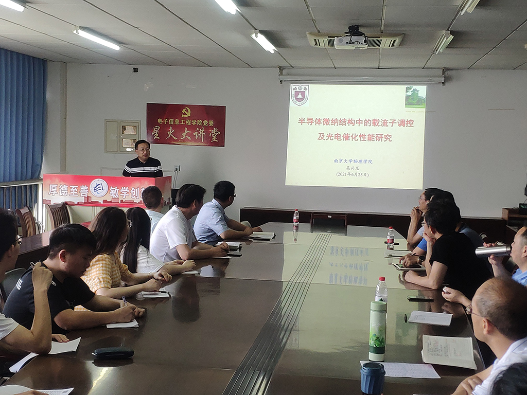 6月25日上午,应云顶国际yd333邀请,教育部长江学者特聘教授,南京大学微电子学与固体电子学国家重点学科主任,博士生导师吴兴龙教授在公司枚乘路校区逸夫楼1103会议室作了题为“半导体微纳结构中的载流子调控及光电催化性能研究”的学术报告。云顶国际yd333经理曹苏群,副经理季仁东,部分教师和研究生代表参加了学术报告,季仁东副经理主持报告会。