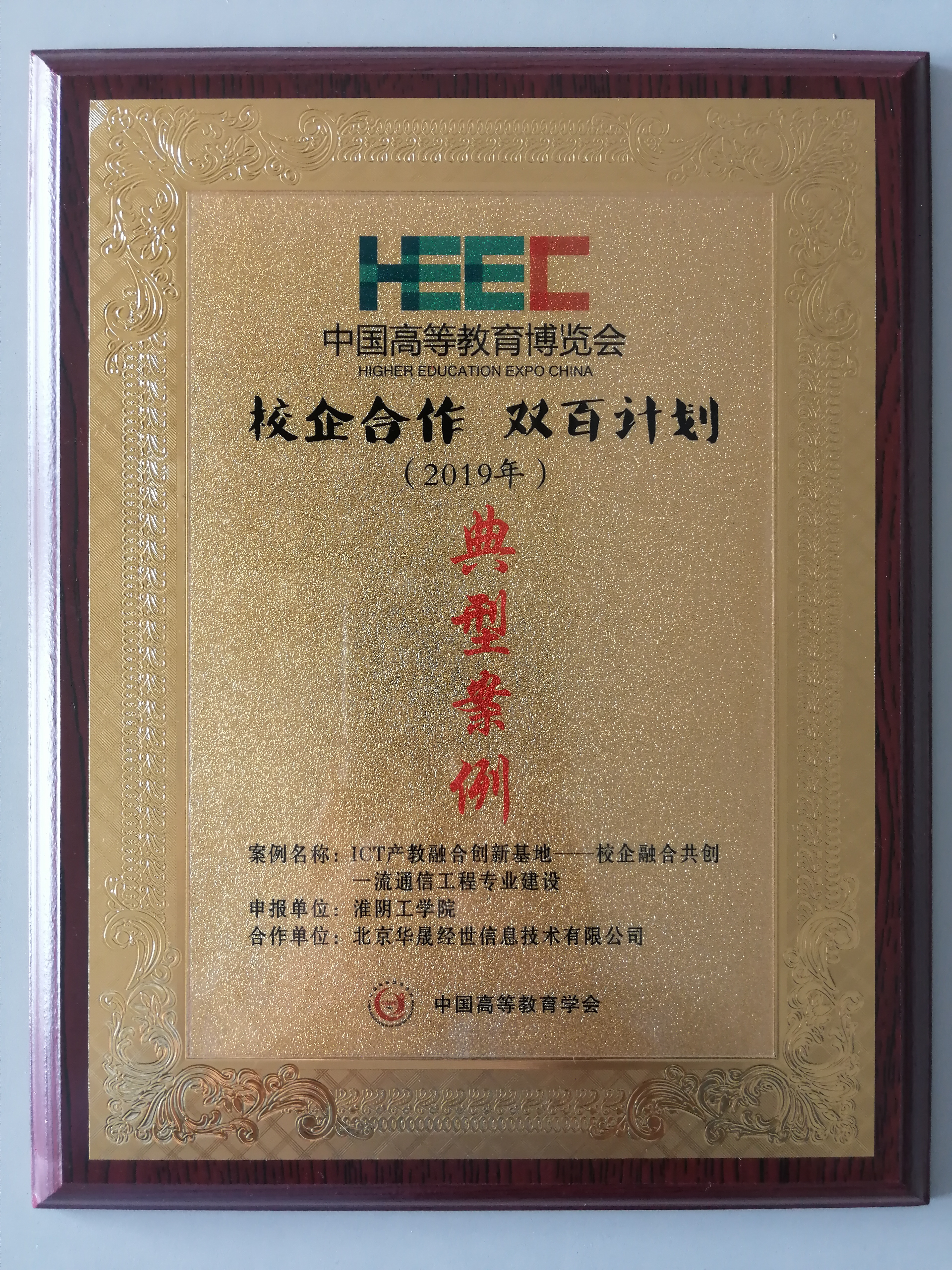 9月25日,2020年创新生态:校企协同育人论坛暨2019“校企合作 双百计划”授牌活动在常州举行。中国高等教育学会副秘书长王小梅、江苏省高等教育学会会长丁晓昌等与会致辞。公司由曹苏群、唐永锋、常波、王海云、蒋峰等老师组织撰写的2个校企合作典型案例,唐永锋、常波、孔庆霞参加南京路演,最终“ICT产教融合创新基地——校企融合共创一流通信工程专业建设”入选中国高等教育学会组织的“中国高等教育博览会”2019“校企合作 双百计划”典型案例。公司通信工程系主任唐永锋老师和ICT驻校经理蒋峰工程师参加了授牌仪式。