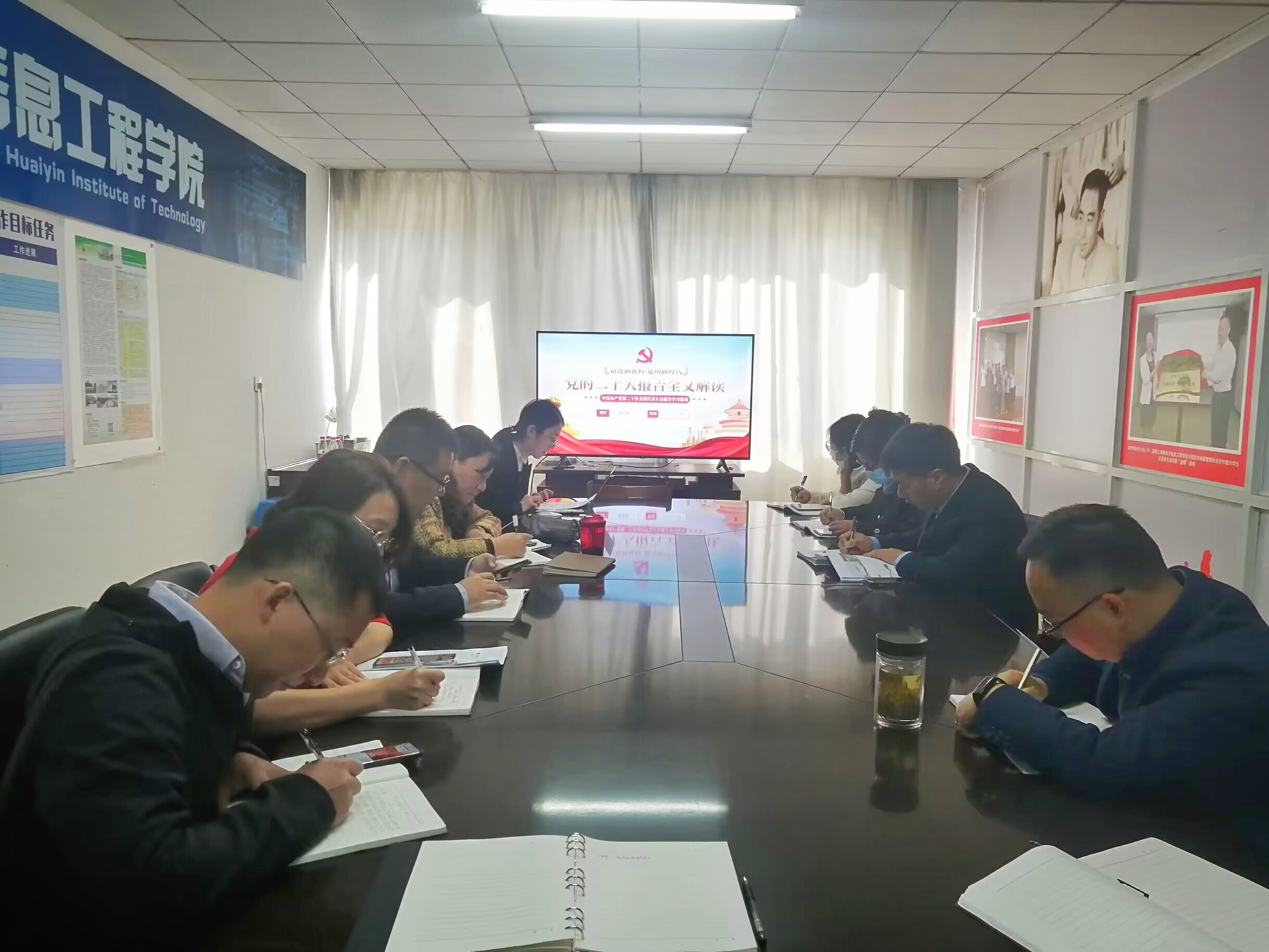 2022年10月24日上午10点,公司党委理论学习中心组在逸夫楼1114室进行2022年第10次集中学习,本次专题为传达学习党的二十大报告精神,教师第一党支部书记陈瑞强、公司团委副书记安亚虹重点发言,学习会由公司党委书记韩飞主持。