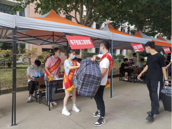 参加本次迎新活动的员工党员,2019级叶凯同学骄傲的说:“今天是我第一次以党员的身份参加迎新生志愿服务,我真实的感受到身体的疲惫,但是更多的是发自内心的成就感、荣誉感、幸福感,在服务和奉献中“忆初心、守初心、践初心”,发挥党员先锋模范作用,是一次丰富而生动的党史教育实践课,很有意义。”