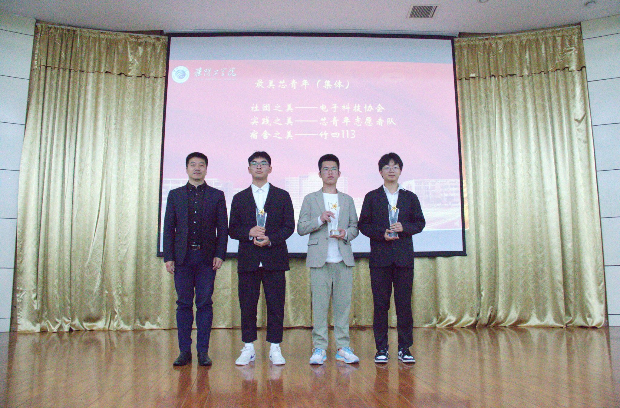 颁奖典礼表彰了陆俊启等6名员工、电子科技协会等3个集体“最美芯青年”称号。最美芯青年个人代表:志愿之美朱雨薇详细介绍了自己连续两年参加云南支教的志愿服务经历;迷彩之美李章庆则介绍了自己的军旅生活和退伍入校后丰富多彩的校园经历;最美芯青年集体代表:社团之美电子协会介绍了协会的宗旨、入会流程及特色活动;全“研”上岸的宿舍之美竹四113宿舍介绍了学霸宿舍的炼成记。