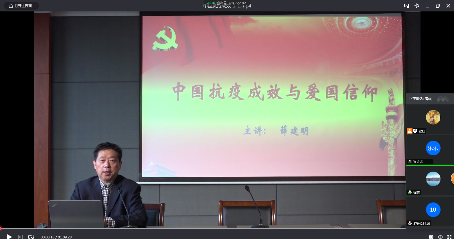 5月20日14:00,云顶国际yd333线上开展了“中国抗疫成效与爱国信仰”主题新思想公开课暨“芯梦计划”团学干部培训第二期“学习新思想 坚定爱国信仰”。本次公开课由图书馆馆长薛建明教授担任主讲,公司主要团学骨干及19级全体同学参加了本次培训。
