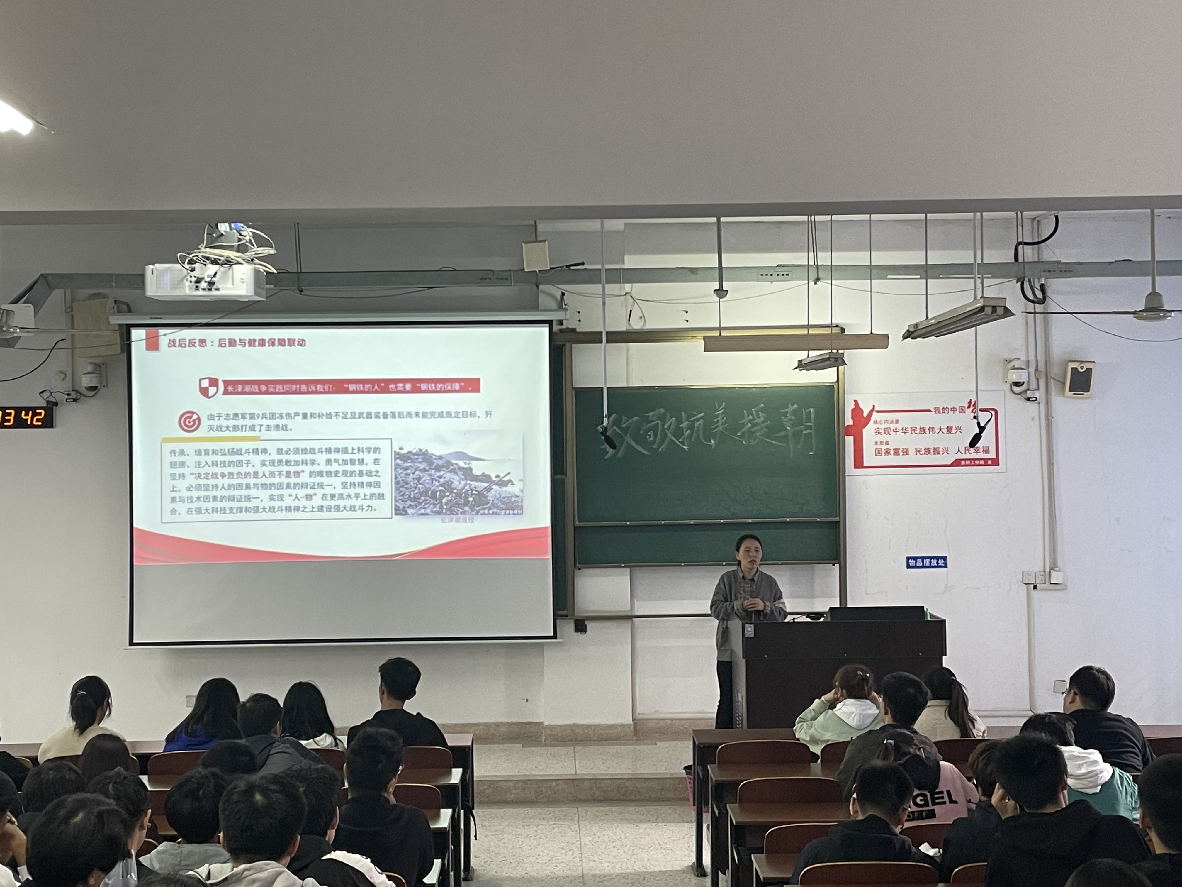 赵莉老师从四个方面具体回忆了长津湖战役的经过:从酷寒战地,紧急调军的作战背景开始,通过装备精良的美军与拥有钢铁般意志的中国军人间的战力对比,详细讲解了歼灭战转为阻击战的战争经过,着重向青马公司展示了战争中超越极限的“血色军魂”。她号召员工们深刻体会抗美援朝精神中的爱国主义精神、革命英雄主义精神、革命乐观主义精神、革命忠诚精神和国际主义精神,将抗美援朝精神发扬光大。