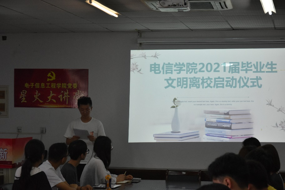启动仪式上,省级先进班集体、淮安市周恩来班通信1171班的副班长郭新茹宣读《​云顶国际yd3332021届毕业生文明离校倡议书》,倡议同学们心存感恩,文明离校,迎接新的挑战。