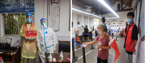 来自南京的社区疫情防控志愿者新生代表陈景琪介绍了自己和志愿队成员帮助进行咽拭子检测、社区居民信息排查、秩序维护等志愿服务经历,他说到,自己是一名老员工了,有义务为社会尽自己的一份力。