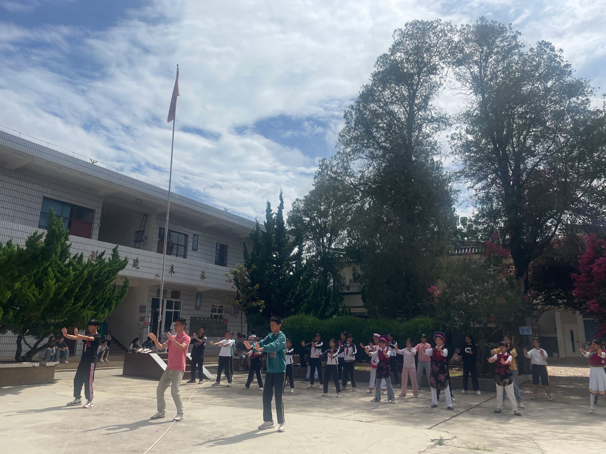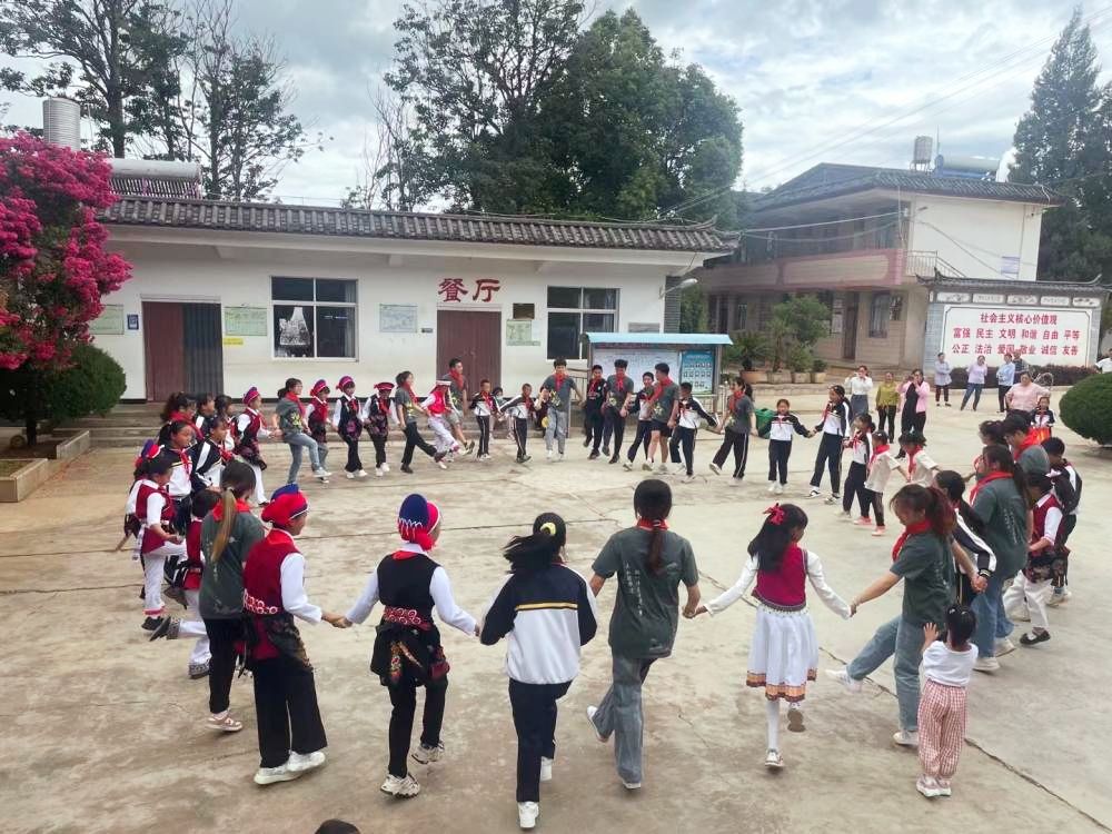室外展示环节上,新登小学的白族娃娃们和支教团成员们共同表演中华优秀传统文化太极拳、手语操《听我说谢谢你》和白族特色打跳《子拉嘞》,展现本次支教活动的教学成果,既弘扬了中华优秀传统文化,又增强了文化自信。