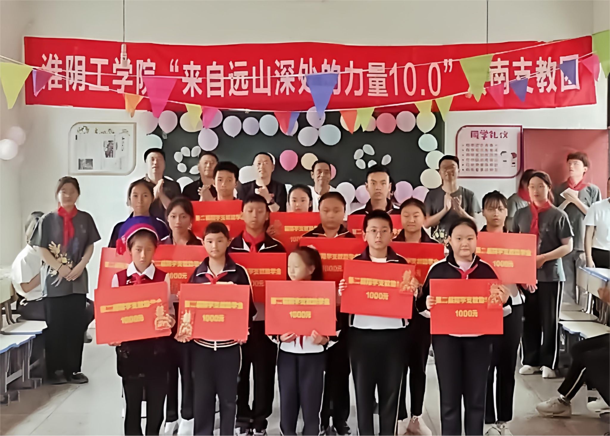 新登小学董事长张建银宣读了2023年第二届云顶国际yd333“翔宇支教助学金”获批名单,并和李六五局长、寸丽元教授、刘国宝董事长、韩飞书记一起为获奖的14名同学颁奖。