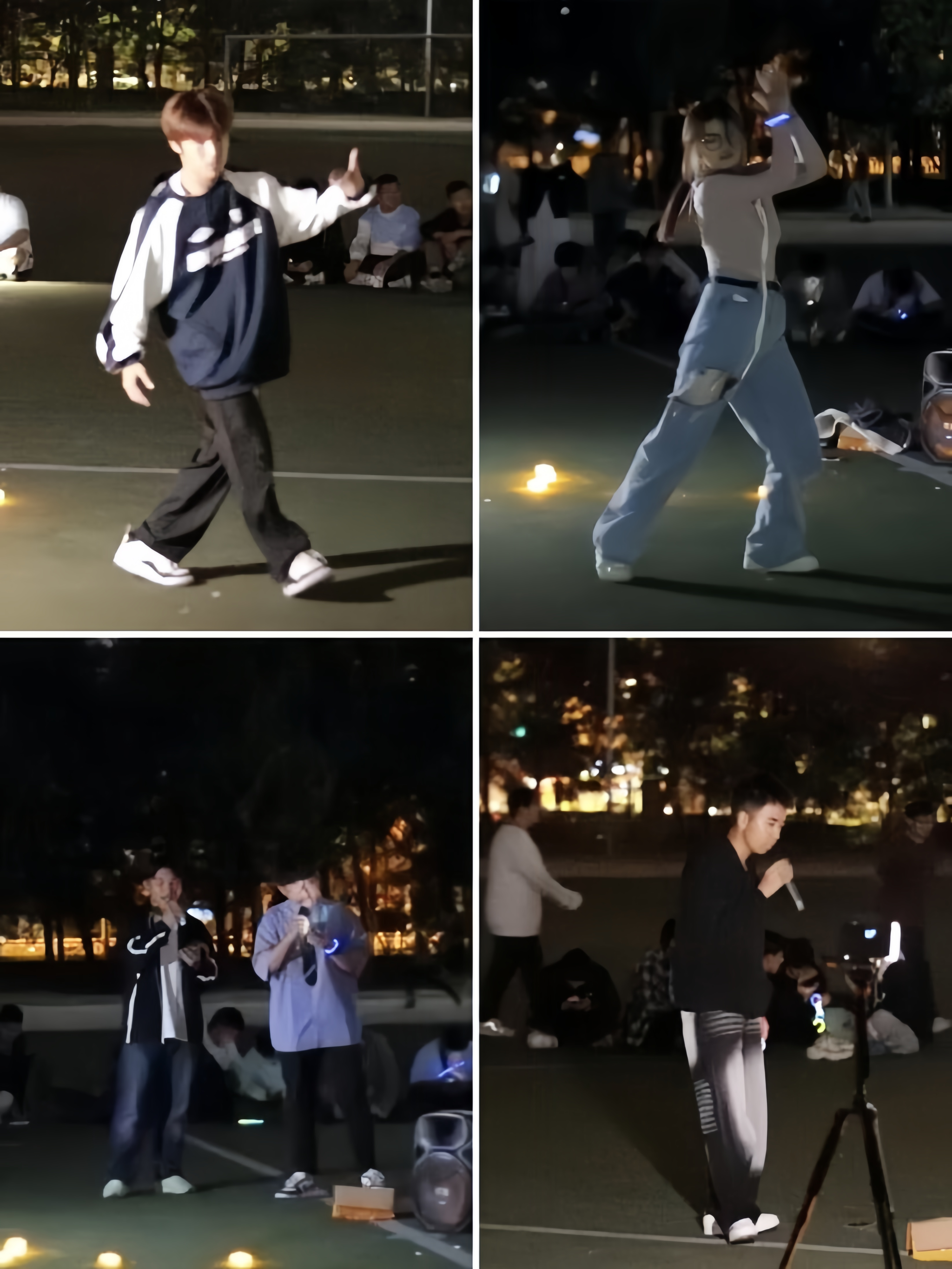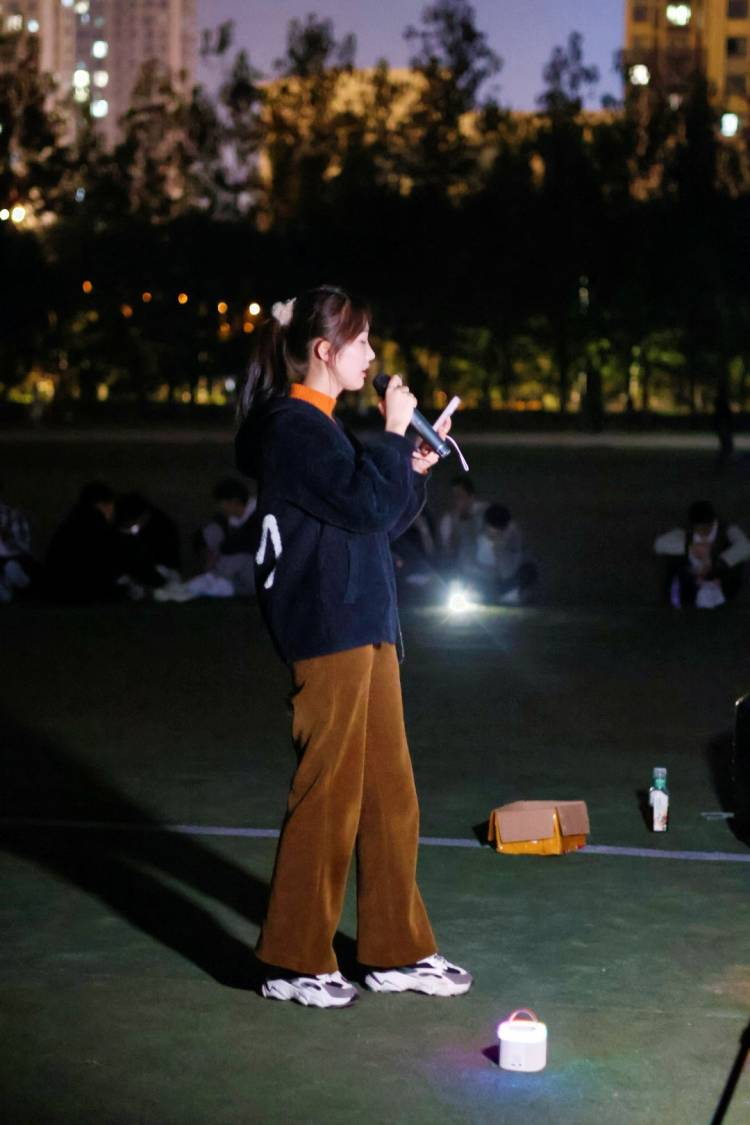 活动开场,舞蹈《I am the best BABY MONSTER》瞬间点燃了全场的热情。接着,《烟火》、《后会无期》等歌曲带领同学们领略了音乐之美。青春正如歌词“让我们跳吧,在无比宏大的星系”。一首《点亮银河尽头的篝火》将氛围推至高潮,灿烂的荧光棒和手机灯光点缀着地面,犹如点点星光。同学们演唱《青花瓷》、《年轮》、《爱的回归线》,引来全场大合唱……笑声、掌声和欢呼声此起彼伏,让整个夜晚充满了欢乐与活力。