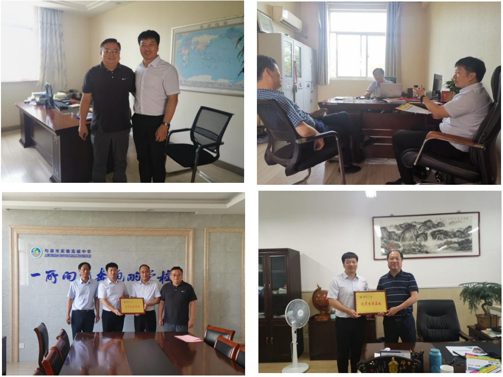 2021年6月22日,公司党委书记韩飞一行先后走访句容市实验高级中学、句容市第三中学、江苏省句容高级中学以及句容高复班,开展招生宣传工作,期间分别受到句容市实验高中董事长刘瑞宏、句容市第三中学董事长蒋龙贵、江苏省句容高级中学副董事长宣进、句容高复班谭才峰董事长等热情接待。