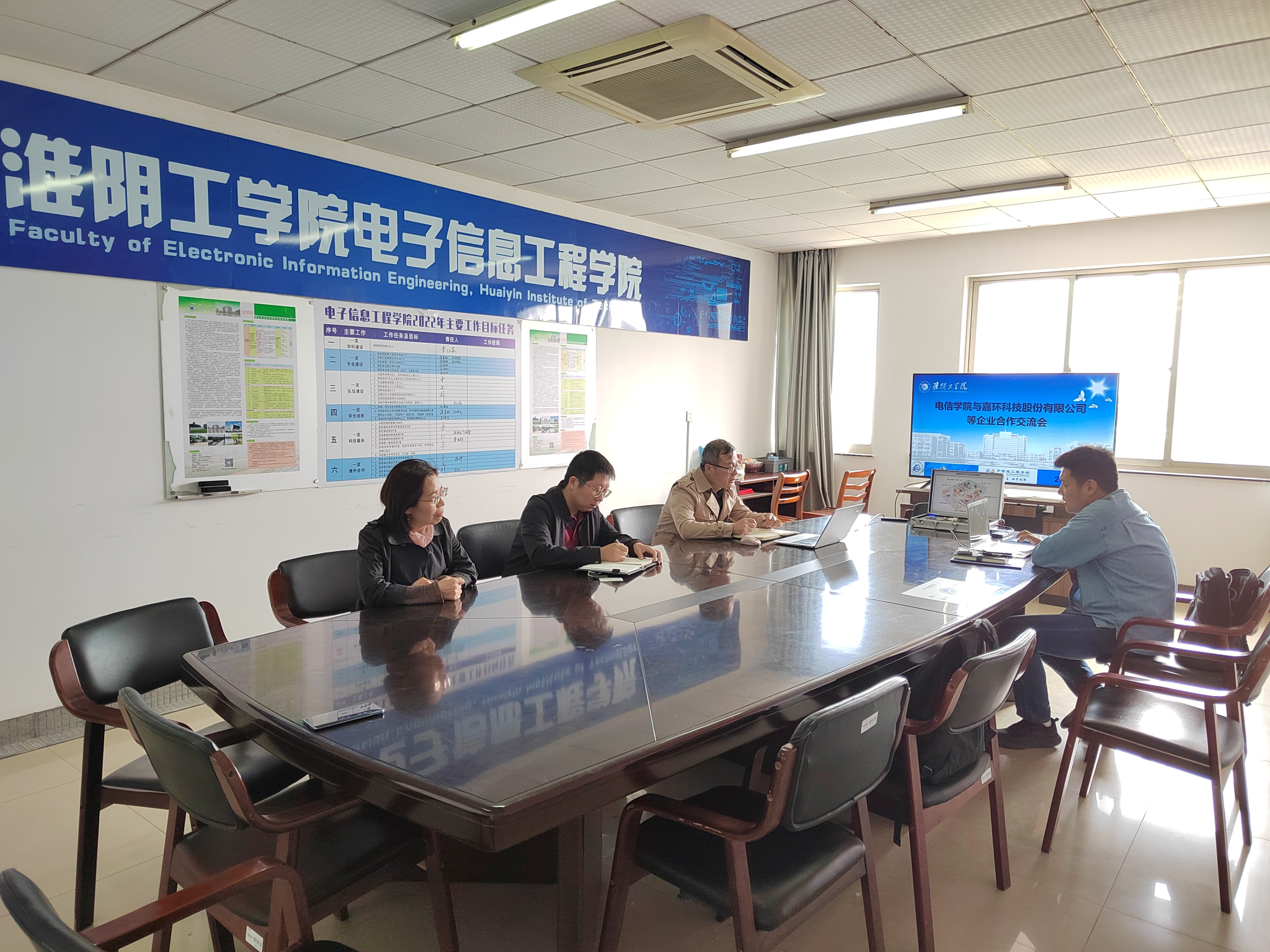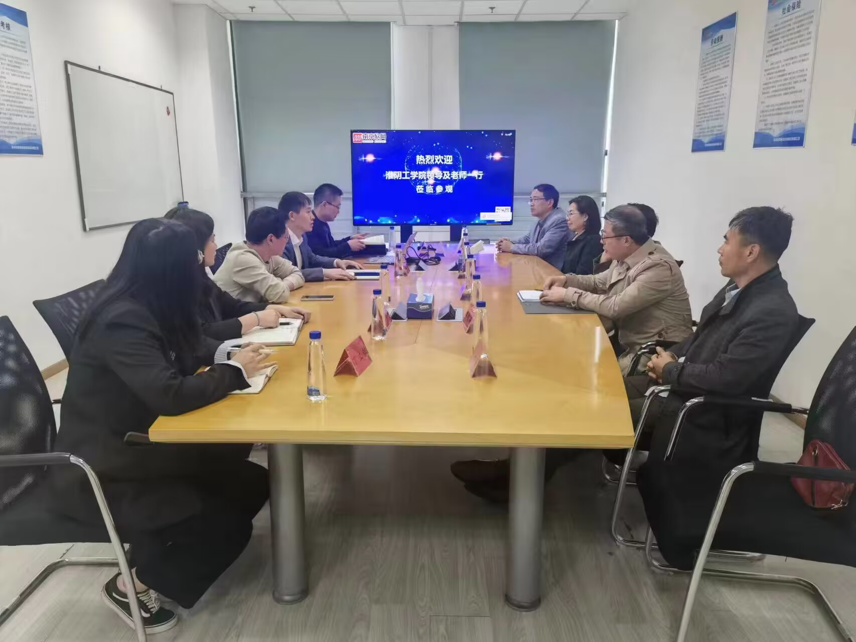 在南京华苏科技,本次调研主要了解了员工实习安排、就业渠道、岗位待遇等情况,企业分享了公司在通信网络人才需求、数字化建设等方面发展历程,员工3个月的实习安排和就业2种不同路径的政策解说,对华苏企业老总、淮工员工陈大龙总经理在淮工毕业后的发展经历,讲述本科生毕业后如何成长、如何发展的问题。双方就校企双方在产教融合品牌专业申报、江苏通信学会科学技术奖申报、等方面合作继续加强,争取取得更多更好的产出。