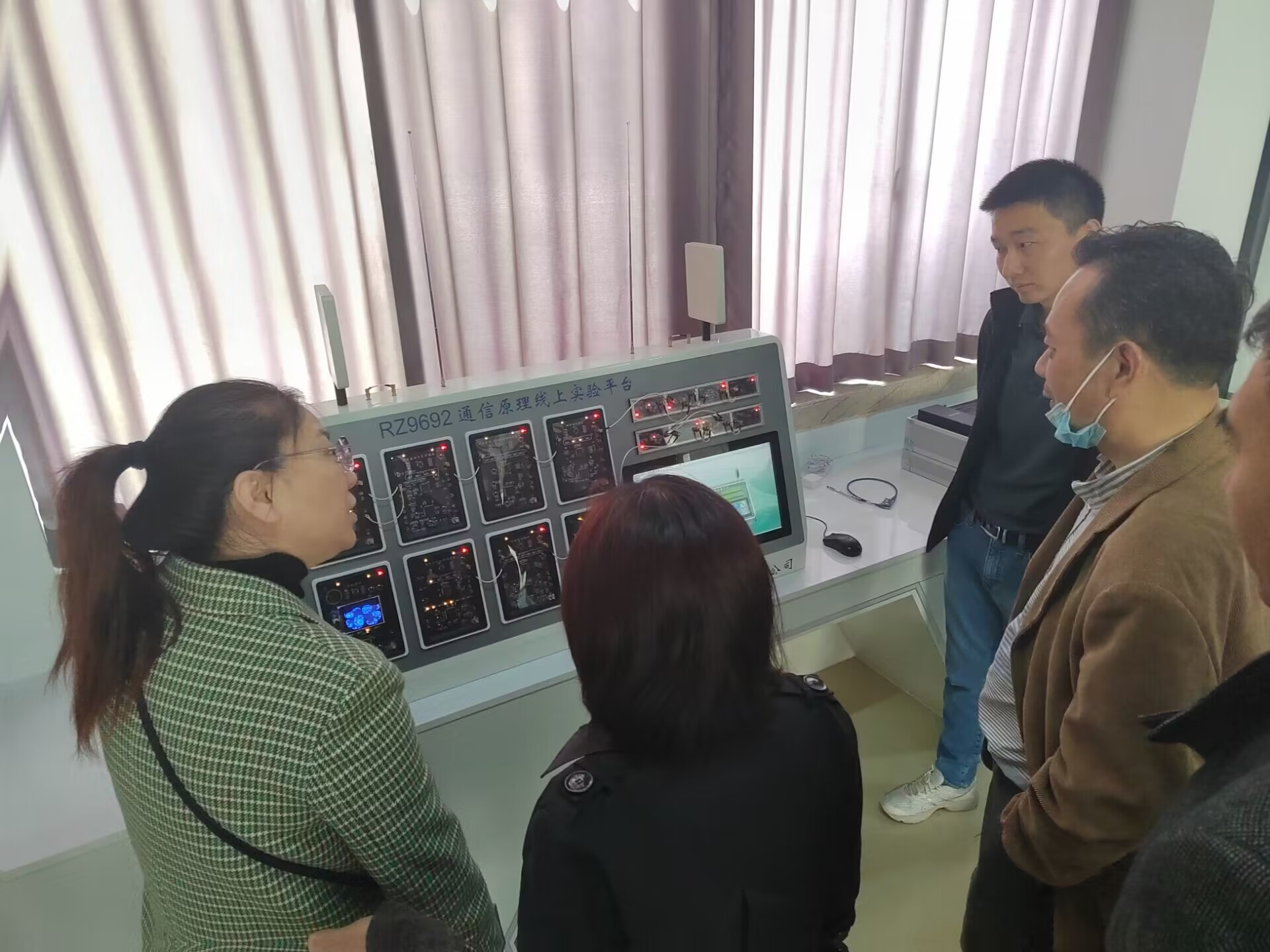 在南京润众,教师一行主要参观了企业开发的各类教学仪器设备,特别是无线通信、微波、高频、交换技术、电子技术基础实验箱,对东南大学、大连理工大学采购的线上线下混合式教学仪器设备进行了详细了解,企业分享了与并华东地区高校在专业实验室建设等方面合作的情况,咨询了企业在人才招聘方面的政策,后期准备推荐优秀毕业生到企业实习就业。