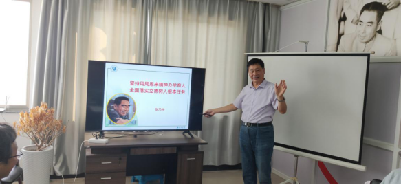 本次专题辅导张乃钟老师首先介绍了周恩来精神的主要内容和怎样理解周恩来精神的实质内涵;然后讲解了用周恩来精神育人是公司立德树人的鲜明特色,并介绍了公司用周恩来精神办学育人的主要实践和成效。张乃钟老师与我们共同分享了周恩来精神的博大精深及其永恒价值,剖析了用周恩来精神育人在立德树人、服务社会和繁荣文化建设等方面的异曲同工之处,结合周恩来事迹从理想信念、爱国热情、道德情操、责任意识、勤奋学习等几个方面讲解了周恩来精神在立德树人中的楷模价值。