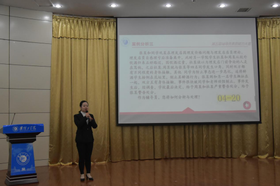 根据初赛成绩,10位辅导员进入决赛。决赛包括案例分析和谈心谈话两个环节,主要考察辅导员分析问题、研判问题、解决问题的能力以及相关理论素养。
