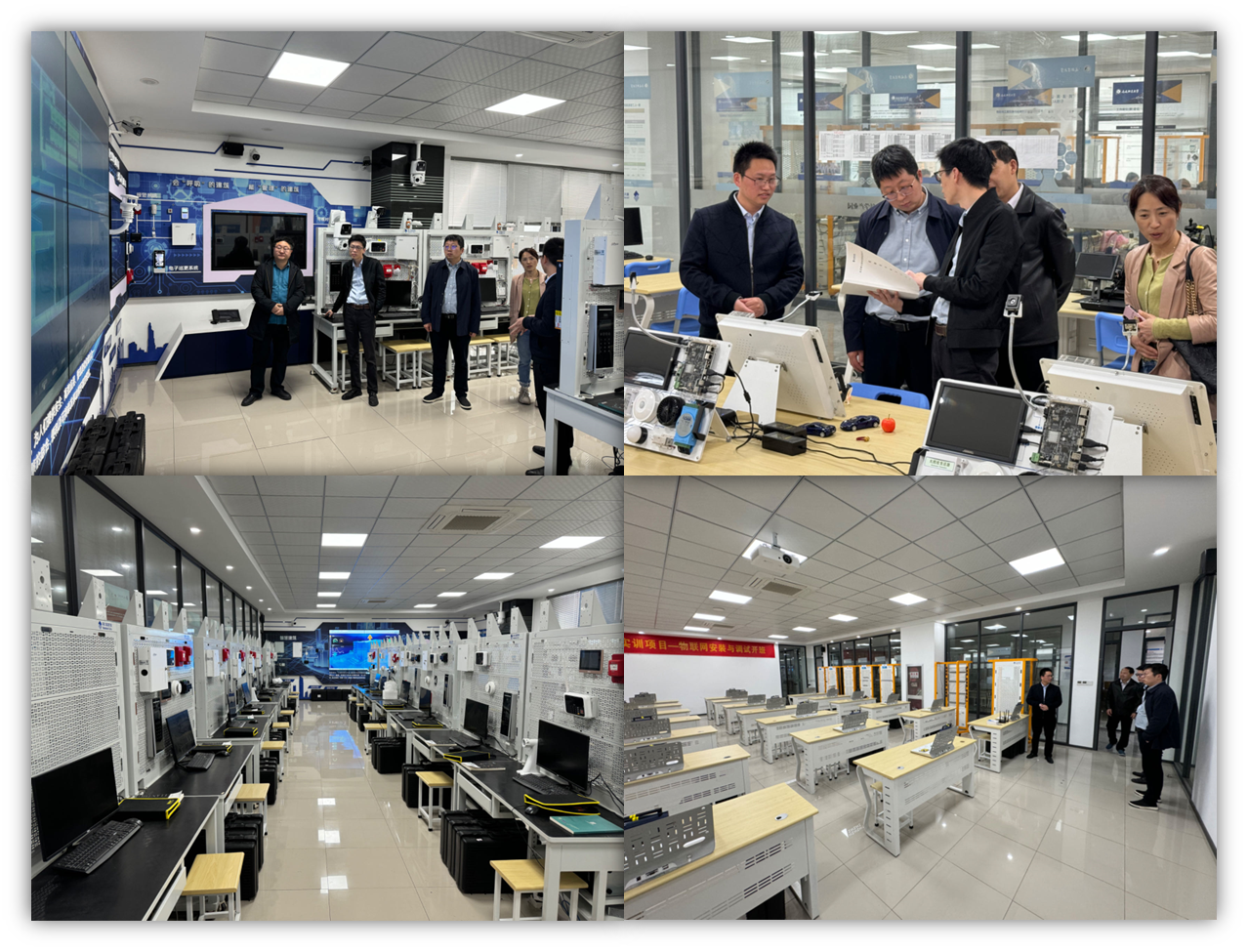 在新大陆科技集团实训基地,公司一行了解了南通职大新大陆现代产业园的建设背景、发展历程、创新模式、人才培养成效及取得的社会效益,参观了建筑物联网综合实训室、传感网应用开发实训室、信息安全实训室及创新工坊实训室。