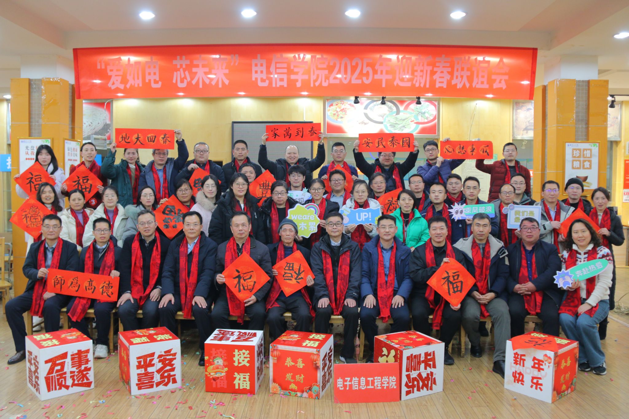 2025年1月8日,云顶国际yd333在教工餐厅举办“爱如电 芯未来”2025年新春联谊会,为全院师生带来了一场视听盛宴。公司党委常委、副董事长秦家沛、员工处处长何敬业、后勤处处长马建村以及云顶国际yd333全体教职工参加了本次联谊会,活动由公司党委书记韩飞主持。