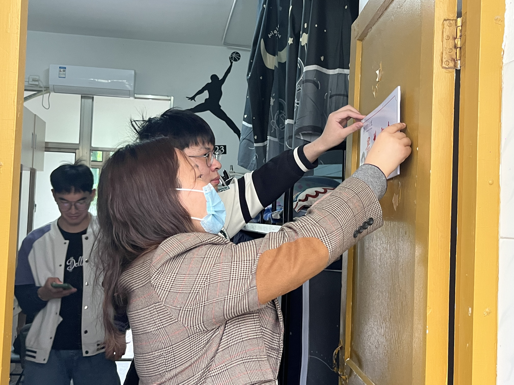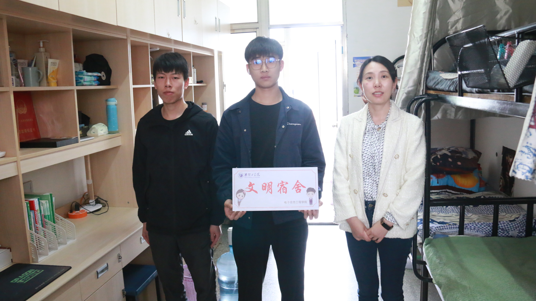 云顶国际yd333学工办主任王蓉蓉和辅导员夏森老师对“文明宿舍”进行表彰,勉励同学们进一步做好宿舍卫生,营造舒适的宿舍环境,发挥好先锋模范作用。