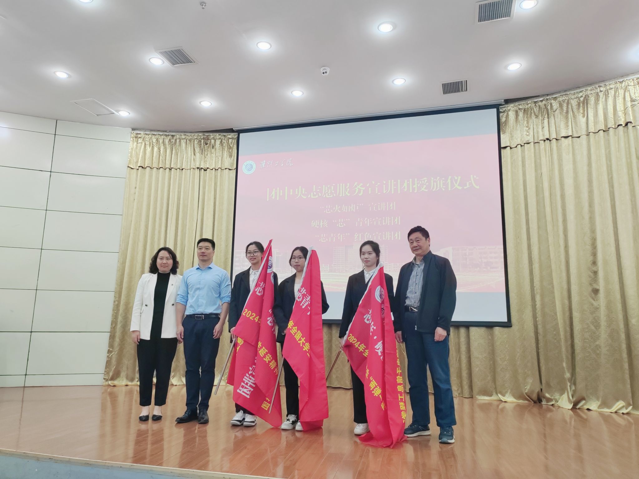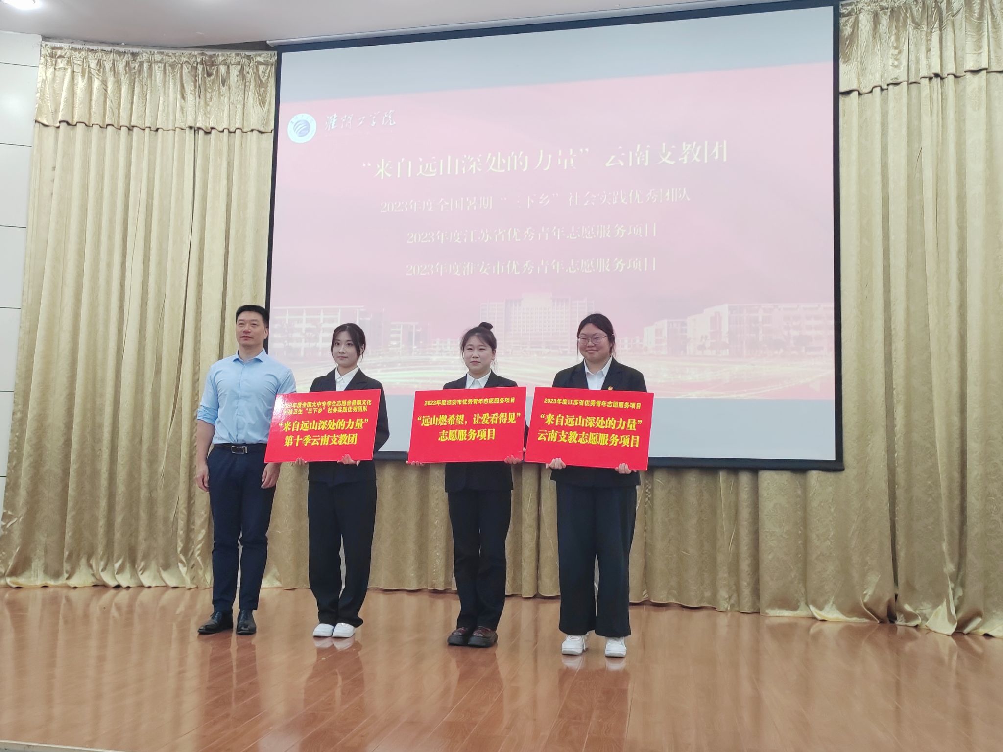 大会为2023年荣获全国暑期“三下乡”社会实践优秀团队、江苏省优秀青年志愿服务项目、淮安市优秀青年志愿服务项目等荣誉的“来自远山深处的力量”云南支教团进行颁奖;为“芯火如炬”宣讲团、硬核“芯”青年宣讲团、“芯青年”红色宣讲团三支团中央志愿服务宣讲团进行授旗。