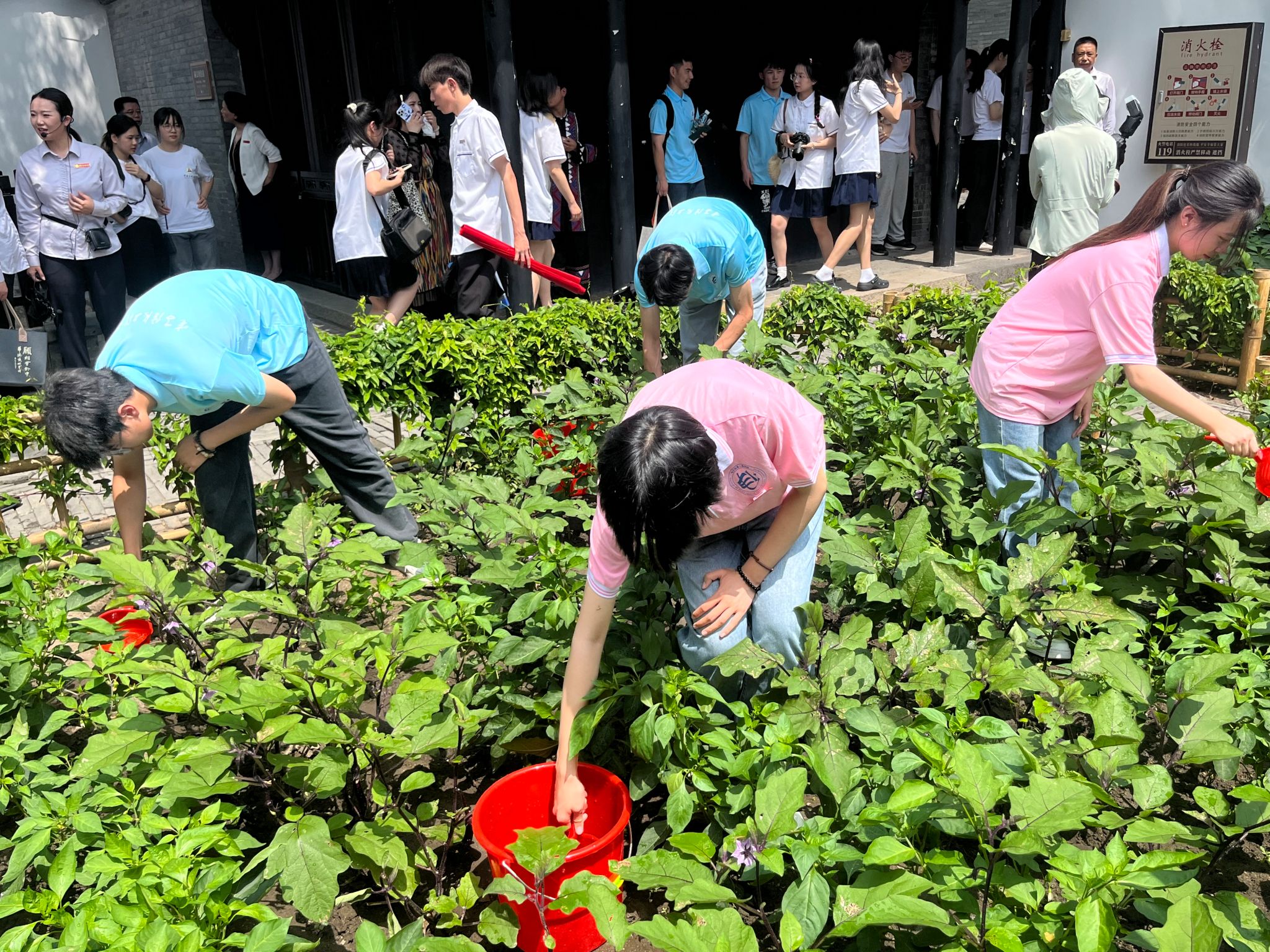 在周恩来故居讲解员的带领下,师生们一起走进周恩来故居,参观了周恩来同志出生的房间、童年读书房等,从一件件老式家具和墙壁上的简单陈设中,同学们了解了童年周恩来生活学习的点点滴滴。师生们来到院子的水井旁,从水井吊水浇灌小菜地里的禾苗,沉浸式感受周恩来总理小时候的劳动生活,实地接受了一次红色教育的洗礼。