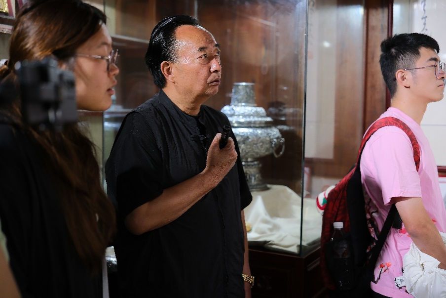 作为国家级非物质文化遗产项目“鹤庆银器锻制技艺”的代表性传承人,寸发标先生说道,一件银器,从银片到成品大概需要敲打十几万次,并且全程需要全神贯注,稍有不慎,便要重头再来。志愿者们迫不及待地体验了“小锤敲”技艺,每一次大锤与小锤的敲击,都让他们体会到银器制作的不易,每一锤下去,都让他们感悟到银器制作的深韵。志愿者们通过观赏银器成品才知银器制作的宏伟壮观,通过体验“小锤敲”技艺感叹银器制作人的匠心精神,他们希望新华银器小镇能够让更多人熟悉,向寸先生这样的传承人能够越来越多,更希望终有一天新华银器小镇能从中国银器第一村变成世界银器第一村。