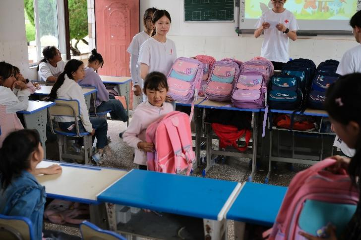 本次仪式上分发的“成长大礼包”由淮安市红十字会提供,其中包含了精心挑选的书包、文具盒、跳绳、彩笔等学习用品及部分体育用品,每一件物品都根据孩子们的实际需求精心准备,旨在全面支持他们的成长需求。