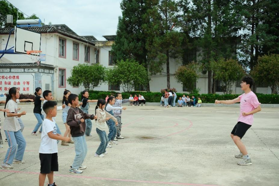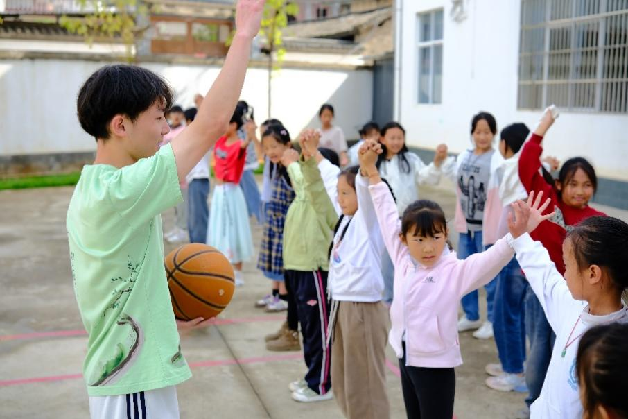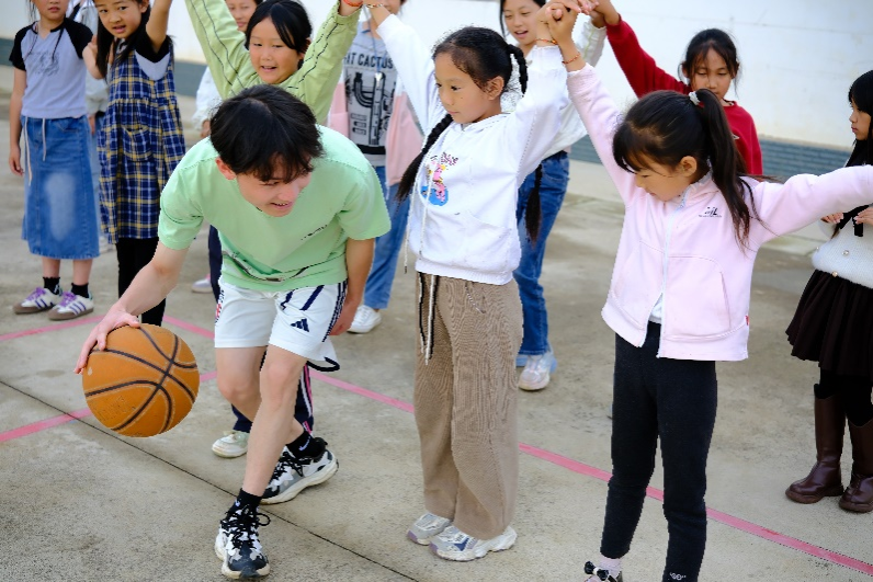 另一位志愿者爵治鸿则以“趣味篮球,强身健体”为主旨,为白族少年们带来了一场意义非凡的趣味篮球体验课。他希望通过富有激情和协作性的体育项目,激发孩子们对团结的深刻理解,并以此致敬即将到来的2024巴黎奥运会。