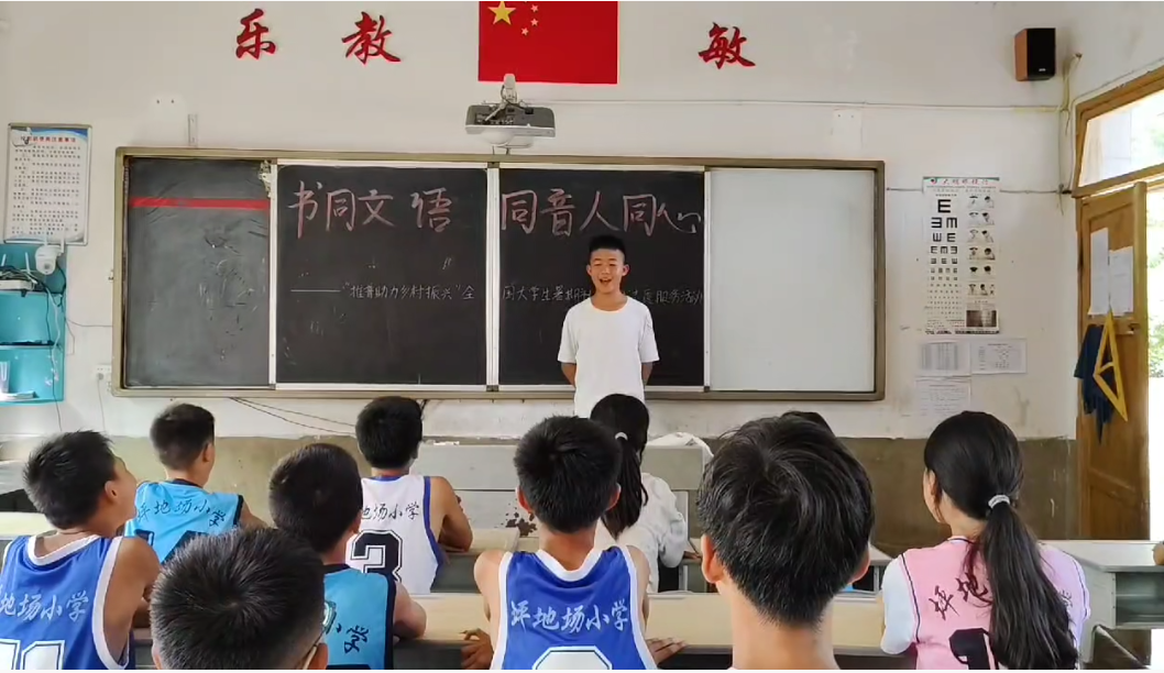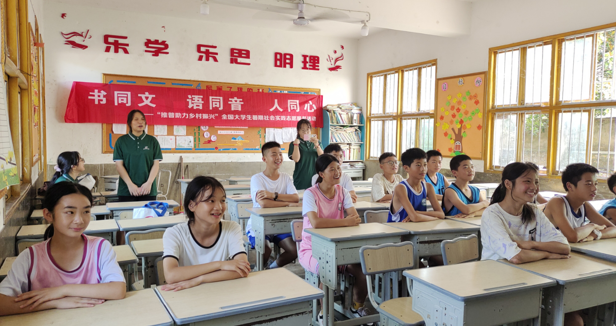 团队成员经过充分的准备和调研,设计了一系列有趣又富有教育意义的活动。他们通过互动游戏、情景剧、普通话朗读比赛、古诗词分享等形式,让孩子们在轻松愉快的氛围中学习普通话。同学们的热情发言点亮了整个教室,他们用简短的自我介绍和心爱的古诗词分享,营造出一种温馨而愉快的气氛。其中,一位同学的声音格外触动人心,他说:“在这个地方,大家都说方言,没办法了解普通话的重要性,也只有在公司上课的时候老师才会用普通话教学,是你们来到山区推广普通话,让我们能够更多接触普通话。”此外,志愿者们还为孩子们讲解了普通话的重要性,以及掌握普通话对于个人成长和未来机会的意义。