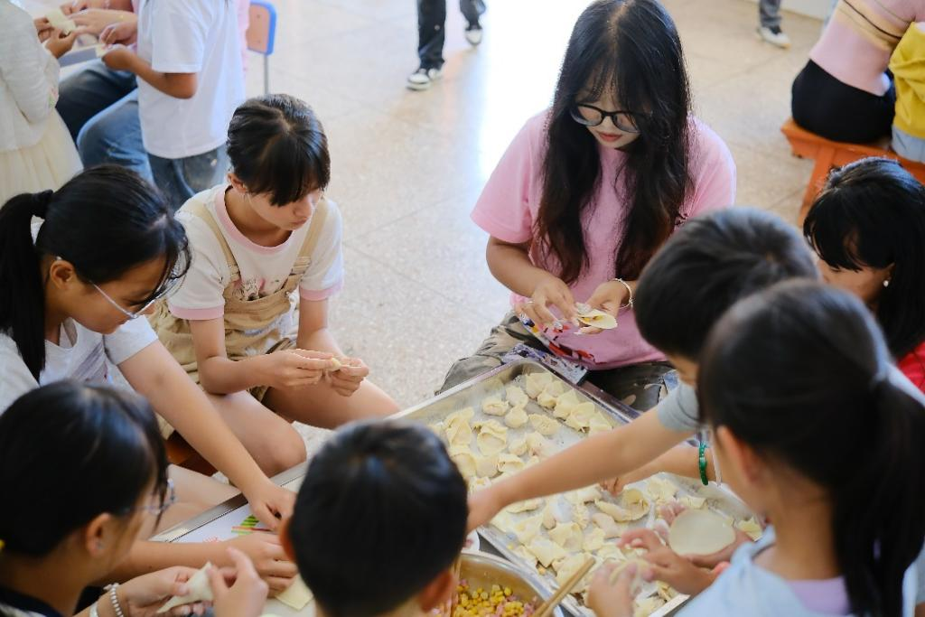 劳育-劳动课堂:劳启心智,育铸品格。志愿者们认为劳动教育是每一名小朋友的必修课。伴随着清新的空气和温暖的阳光,志愿者与员工们携手合作,对校园进行卫生大扫除,他们手持扫帚、卫生钳、垃圾袋等清洁工具,分成多个小组,按照事先规划好的区域和任务,充满热情地开始了清扫工作。志愿者们还和孩子们一起包饺子,他们围坐一桌,共同手工制作饺子,有的饺子形状奇特,有的馅料外露,但在不断的尝试和改进中,他们逐渐掌握了要领,手中的饺子也逐渐变得有模有样。员工们不仅学会了如何制作饺子,还吃上了自己亲手包的饺子,更重要的是,在劳动中找到了乐趣,并深刻体会到了团队协作的力量。