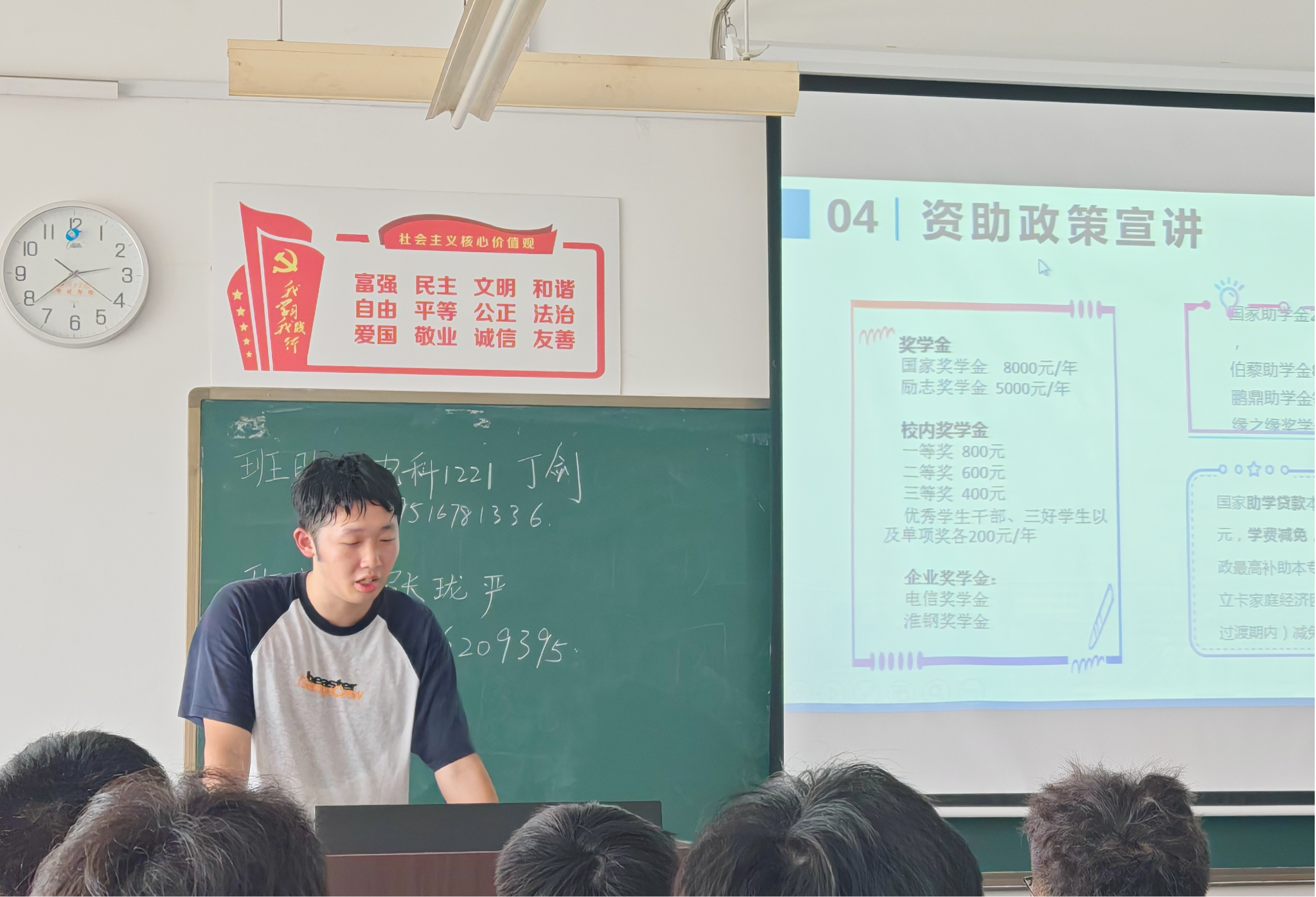 各班新生班主任结合班级实际开展资助政策宣讲活动。电科1241班班助同时担负着班级困难认定工作,他结合自身工作实际向各位新生强调“诚信认定”的重要性。人工智能1241班班主任向新生详细介绍本校老员工在校期间可获得的各项奖助学金。他勉励同学们从完善的奖助政策中汲取自信,不畏过往、不惧未来,做自强不息的拼搏者。