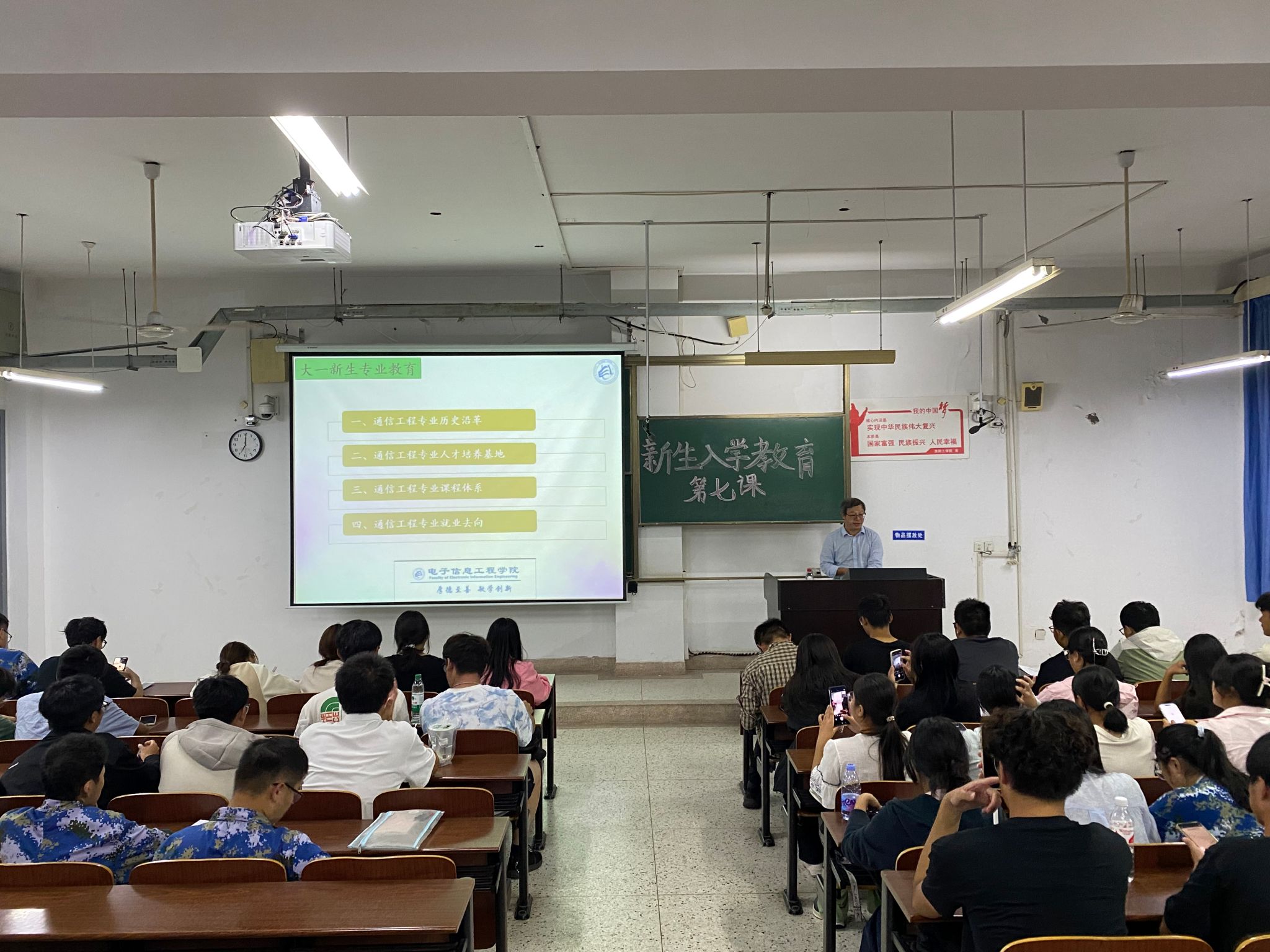 秋风送爽,学海启航。9月24日晚19:00,云顶国际yd333在YFJ0106、YFJ0108、YF0510、YF0512召开专业认知教育,通信工程、电子信息工程、电子科学与技术工程、人工智能专业系主任唐永锋、朱铁柱、杨潇、黄飞老师担任主讲,各专业全体本科新生参加。