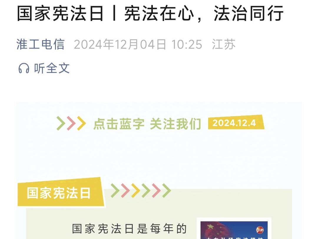 本次宪法宣传周充分发挥了线上线下联动的优势,扩大了宪法知识的传播范围。公司“淮工电信”在活动期间转发宪法相关知识,让员工们在课间休息时,能够随时随地轻松了解宪法的基本内容,为广大师生提供了更多的学习途径,这不仅增强了他们对宪法的认识,也让宪法学习变得更加亲民、平易近人。