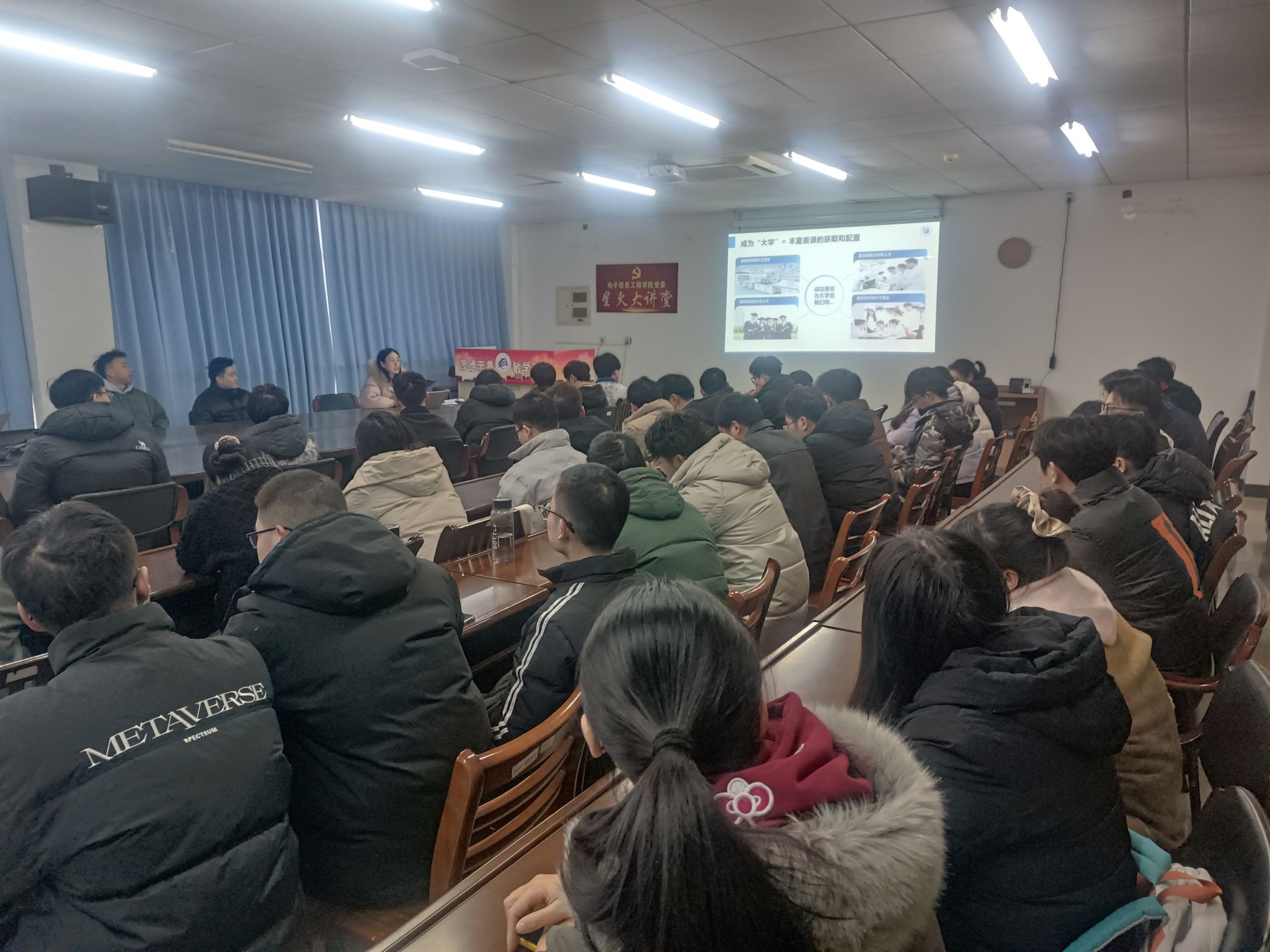 紧接着,党委副书记王海云通报了当前研究生毕业生的就业落实情况,并深入分析了当前的就业形势。她建议毕业生们要理性看待就业市场,适当调整就业预期,采取“先就业后择业”的策略,以稳健的步伐迈向职业生涯的新阶段。同时,王书记也提醒大家要积极参与寒假期间各地人社局组织的招聘会,尽早锁定心仪的就业岗位。她还鼓励大家充分利用身边的资源,如导师、同学和亲友等,构建个人求职网络,为自己赢得更多的就业机会。在求职过程中,王书记特别强调了提高反诈防骗意识的重要性,确保个人信息安全不受侵害。