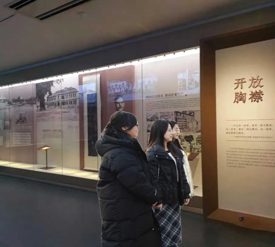 习近平总书记在参观南通博物苑时指出“张謇是中国民营企业家的先贤和楷模。要把这里作为爱国主义教育基地,让更多人特别是广大青少年受到教育,坚定四个自信”。南通博物苑是由清末状元张謇先生于1905年创办,是中国第一所由国人独立创办的公共博物馆。踏入博物苑,一股浓郁的历史文化气息迎面而来。在张謇先生的生平展览区,实践团成员们驻足凝视,图片、实物如生动史书,展现出张謇先生兴办实业救国、发展教育、投身公益的不凡一生。参观结束,成员们心潮澎湃,纷纷表示要以张謇先生为标杆,努力学习专业知识、提升能力,将个人成长与国家发展紧密相连,为国家繁荣富强贡献力量,让张謇精神在新时代绽放新光芒。