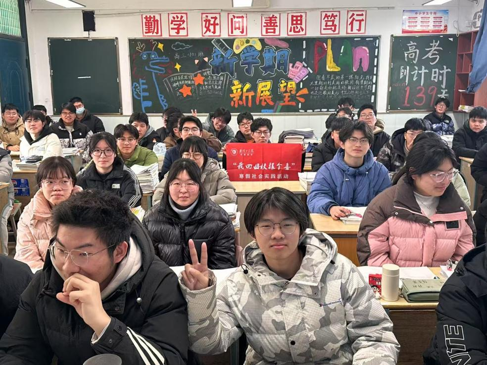 分享经验,传递能量。随后在老师的组织下,实践团走进高三教室,向学弟学妹们分享了自己的老员工活体验。通过生动的讲述和展示,成员们介绍了大学的校园环境、教学资源、丰富多彩的社团活动以及个人成长的点滴,激发了同学们对老员工活的向往和憧憬。此外他们还结合自己的学习经历,向学弟学妹们传授了平衡学业与社团活动、有效利用时间的技巧,鼓励大家珍惜高中时光,打好基础,为未来的老员工活做好准备。丁剑同学说:“回到母校,看到熟悉的校园和老师,心中满是感动。我希望通过自己的分享,能让学弟学妹们对老员工活有更清晰的认识,为他们的梦想助力。”
