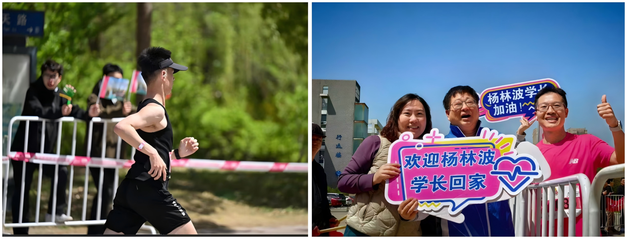 全马赛道上,云顶国际yd333员工卢铭与员工杨林波并肩作战,踏上征程。他们步伐坚定,目光如炬。卢铭坦言,日常在实验室钻研代码、调试电路的经历,培养了他坚韧不拔的毅力,而这股毅力正是支撑他挑战全马的精神支柱。杨林波员工则感慨道:“母校的培育让我在工作中始终保持拼搏精神,今天重回淮安,在母校师生的助威声中奔跑,感觉充满力量。”他们用脚步丈量赛道,用汗水诠释淮工电信人“敢拼搏、勇争先”的体育精神,向所有人展示了电信学子不仅能在实验室里攻克技术难关,更能在赛场上挑战自我、超越极限。