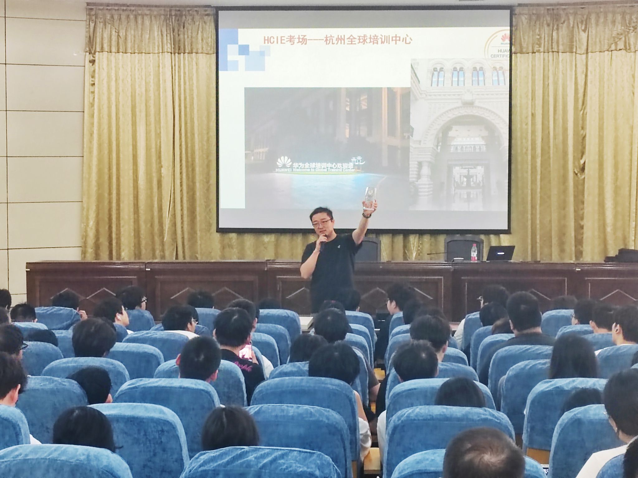 6月18日 ,南京嘉环科技股份有限公司校企合作部经理王帅应邀来校,为公司学子带来了一场关于华为HCIE技术认证考试及华为技术认证夏令营的精彩宣讲会。此次活动旨在深化产教融合,帮助员工深入了解前沿技术在实际行业中的应用,明晰未来职业发展方向。