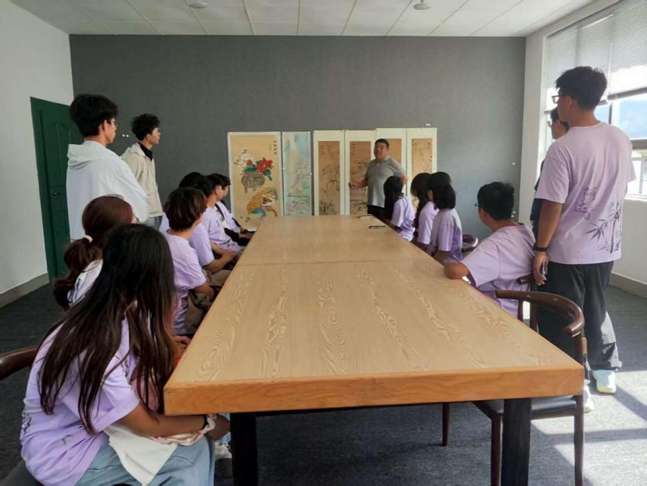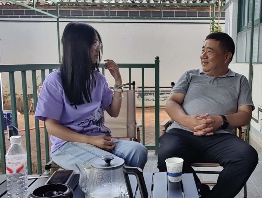 志愿者代表阚欣雨、王怡专访了刘馆长,聆听其以艺术振兴乡村的独特蓝图。刘馆长深情介绍了鹤庆深厚的书画传统,馆内珍藏从本土名家到张大千、徐悲鸿等大师之作,勾勒出清晰的艺术脉络。他更分享了最动人的变化:村民从旁观者转变为文化共建的主角,主动改造民宿、热情待客,让艺术真正融入乡村肌理,实现“文化活起来,村民富起来”的良性循环。结合其基层工作经验,刘馆长生动阐述了当地白族与汉族在长期生活中形成的“你中有我,我中有你”的和谐共生格局,为美术馆倡导的和谐理念提供了坚实的社会注脚。他妙语连珠,坚信古老艺术在乡土重生、多民族文化交响,正绘就一幅“人与自然和谐共生、艺术与乡村美美与共”的鹤庆新画卷。志愿者们目睹这座红土地上孕育的艺术种子,深切感受到艺术在激活乡村内生动力、推动振兴中的蓬勃生机。