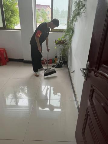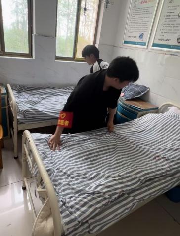实践队成员邓云芳和钟艳文在药房细致核查,确保每位老人的体检单准确无误。温强健、张翔、符丰三位同学则在办公室和输液室进行卫生打扫和病床整理工作,为前来就医的老人创造一个整洁、舒适的环境,用实际行动传递温暖和关怀。