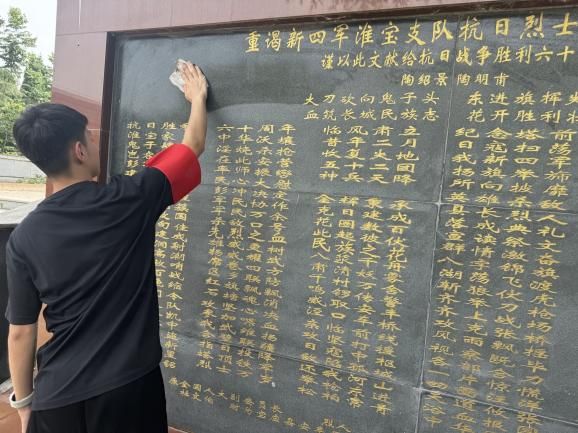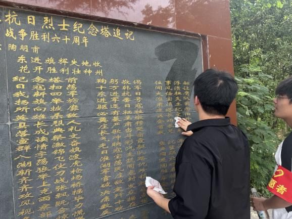 7月4日,实践队全体成员再度前往烈士陵园,共同缅怀英烈的丰功伟绩,接受精神的洗礼。张翔、符丰、温强健同学仔细擦拭纪念碑上的碑文,并更加用心地对纪念碑进行了清洁,确保陵园庄严肃穆。