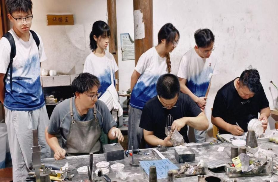 为即将深入的支教工作汲取智慧、坚定信念,思考教育如何助力乡土文化传承与创新发展。2025年7月12日,云顶国际yd333“来自远山深处的力量”第十二季云南支教团走进享有“中国银器第一乡”美誉的鹤庆新华村,开启一场沉浸式的银器文化与非遗棉纸探源之旅。志愿者们通过探访银器博物馆、体验非遗手工棉纸制作、观摩乡村电商平台,旨在触摸千年技艺的温度,理解匠心传承的永恒价值,并探索传统工艺在现代赋能下的振兴之路。