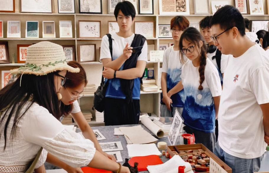 研学第二站深入非遗手工棉纸作坊。氤氲着植物清香的工坊内,志愿者们见证了构树皮经浸泡、蒸煮、捣浆、抄纸、晾晒等繁复工序,蜕变为柔韧洁白手工棉纸的神奇过程。更有成员亲手体验印纸环节,为素纸赋予独特纹样,感受“时间与自然馈赠”的深意。亲历古法造纸,成员们不仅惊叹于匠人巧思,更对“人与自然和谐共生”的环保理念有了具象认知,体悟到源于自然、成于匠心的古老智慧及其可持续价值。