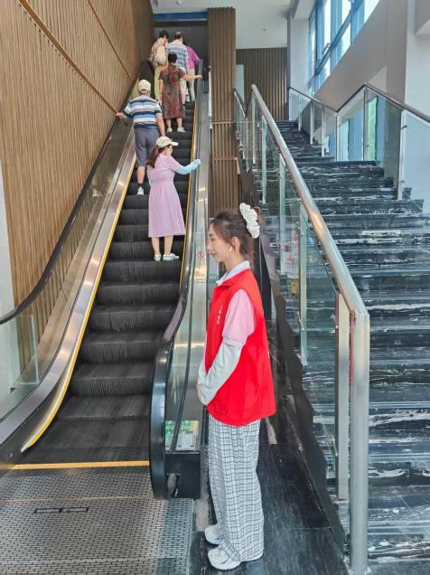 这抹红,是烈日下的执着印记。汗水浸透衣衫,阳光灼烤面庞,成员们的脚步却从未停歇。他们如追寻信仰的星火,穿梭于展陈与故居间,成为高温淬炼下愈发鲜艳的奉献旗帜。这抹红,更是知识与温情的桥梁。青年们化身为讲解员,以青春的热情,讲述着总理年少时的壮志豪情、一生的鞠躬尽瘁、为官的廉洁奉公以及深厚的家国情怀,深深感染着每一位听众,成为总理精神在当代的诠释者。这抹红,同样体现在脚踏实地的服务之中。维护现场秩序、耐心解答疑问、认真清洁环境、热情引导咨询……每一项细微的行动,都是对 “奉献、友爱、互助、进步” 志愿精神最为有力的践行。