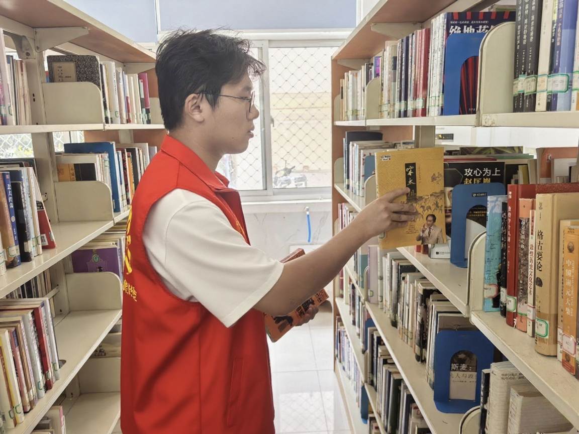 图书馆作为知识传播与文化交流的重要阵地,书籍的有序排列与环境的整洁舒适,是保障读者良好阅读体验的关键。志愿者陆伟杰走进图书馆,主动投身书籍整理志愿服务。陆伟杰对图书馆的书架区域进行了全面且细致的整理。他依据图书分类规则,将不同类别、不同作者的书籍逐一归位,确保每一本书都能“各得其所”。在他看来,志愿服务不仅是一种付出,更是一种收获。通过参与图书馆的志愿服务,他不仅锻炼了自己的耐心和细心,还提升了自己的沟通能力和社会责任感。