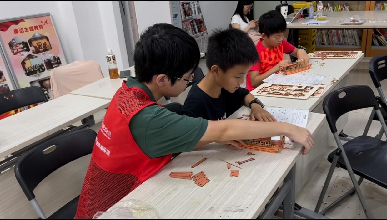 基层一线的 “小红船” 主题活动成为实践中的亮眼一笔。实践团成员组织社区儿童动手组装中共一大红船木制模型,孩子们用稚拙的手指一遍遍粘贴桅杆、拼接甲板,专注的神情里透着对历史的好奇。当小小的红船模型在他们手中成型,视频里风雨激荡的革命岁月与眼前孩子们认真的模样交相辉映,让历史的温度在动手实践中悄然传递。团队成员张宇韬深有感触:“基层服务不只是解决当下需求,更要播撒信念的火种。孩子们举起红船模型时眼里的光,让我明白我们守护的不仅是当下的安稳,更是未来的精神传承。”