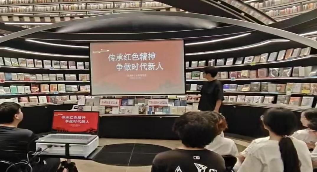 除红色宣讲外,志愿者们还同步开展图书整理、借阅引导等服务:按类别归置散落书籍、协助更新借阅登记、为读者指引书架位置,助力钟书阁优化阅读环境,让这座城市书房成为暑期青少年的 “精神乐园”。“把红色文化融入阅读推广,既能让孩子们爱上读书,又能帮他们从小树立家国情怀。” 志愿者小杨说。