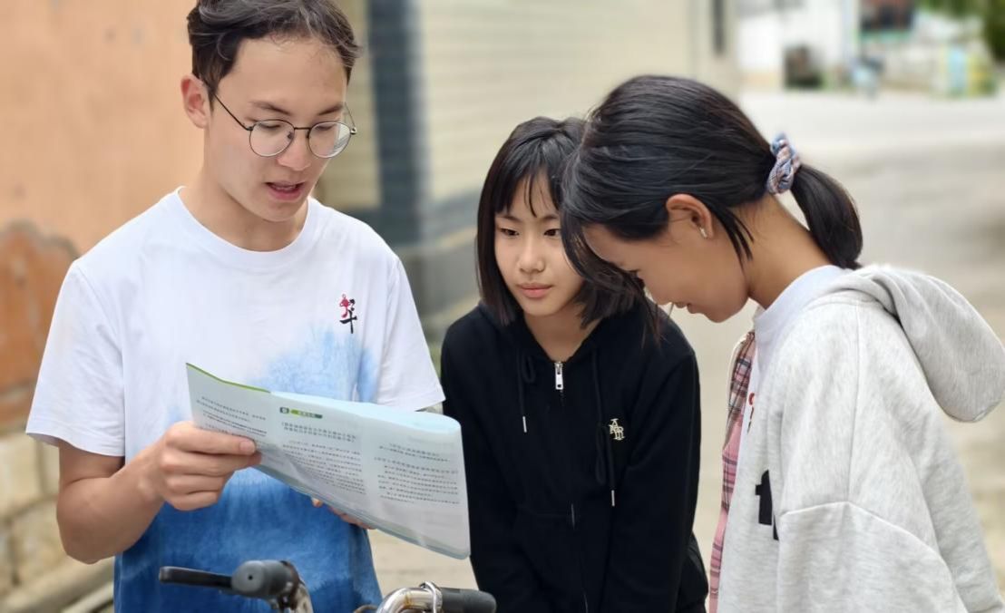 支教队员和几位“推普小标兵”组成宣传小队,向居民发放普通话宣传手册,用通俗易懂的语言讲解规范用语的重要性;通过趣味题目引导大家关注发音规范与日常用语误区;还为老年人提供简单的普通话教学,帮助他们解决与子女、邻里沟通中的语言障碍。