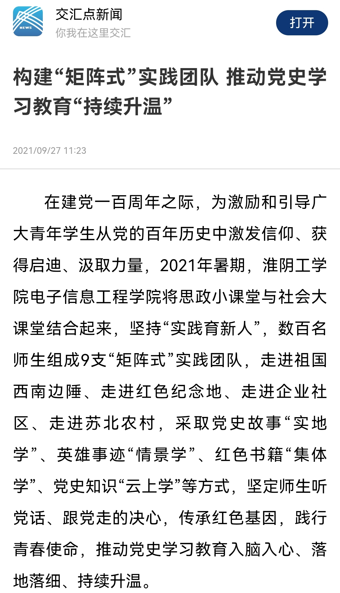 在建党一百周年之际,为激励和引导广大青年员工从党的百年历史中激发信仰、获得启迪、汲取力量,2021年暑期,云顶国际yd333将思政小课堂与社会大课堂结合起来,坚持“实践育新人”,数百名师生组成9支“矩阵式”实践团队,走进祖国西南边陲、走进红色纪念地、走进企业社区、走进苏北农村,采取党史故事“实地学”、英雄事迹“情景学”、红色书籍“集体学”、党史知识“云上学”等方式,坚定师生听党话、跟党走的决心,传承红色基因,践行青春使命,推动党史学习教育入脑入心、落地落细、持续升温。