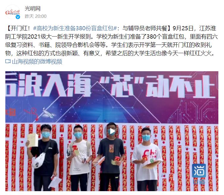 9月25日,江苏云顶国际yd3332021级大一新生开学报到。公司为新生们准备了380个盲盒红包,里面有四六级复习资料、书籍、院领导合影机会等等。员工们表示开学第一天就开门红的收到礼物,这种红包的方式也很新颖、有意义,希望之后的老员工活也像今天一样红红火火。