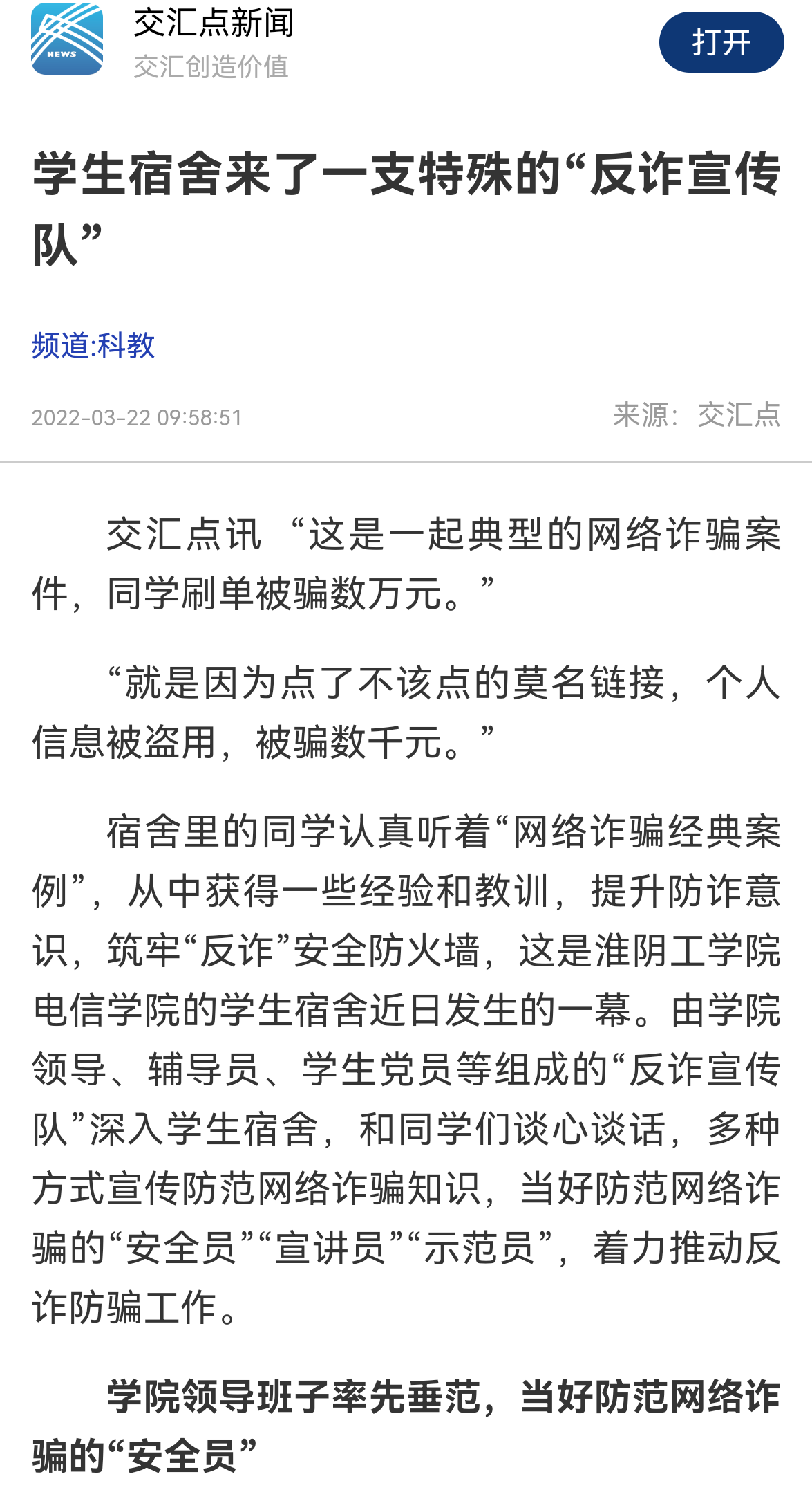 交汇点讯 “这是一起典型的网络诈骗案件,同学刷单被骗数万元。”