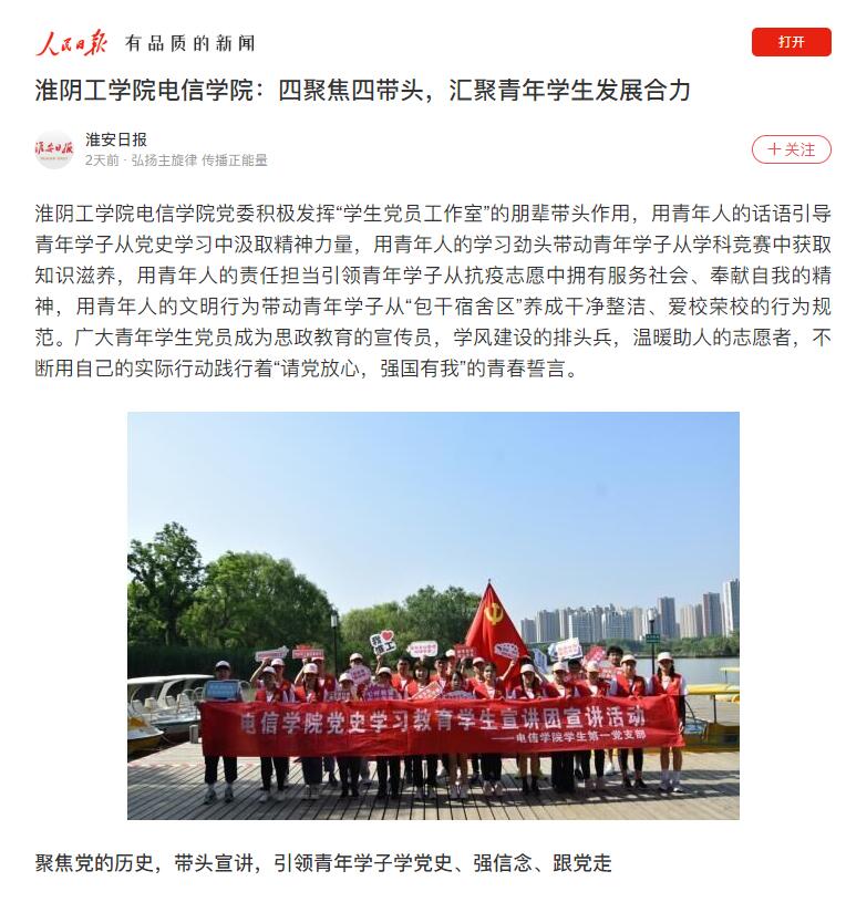 “党史+学风”宣讲团的同学们还走进淮安市天津路小学和周恩来故居,宣讲党史,共话成长,从校内走向校外,从线下走向线上,从单一形式转向多种形式,激励青年学子勇担强国使命、赓续百年辉煌。